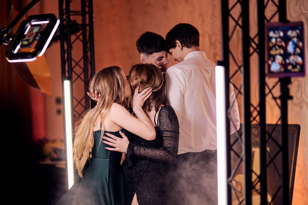 Nasza videobudka pomieści nawet do 10 osób jednocześnie! Chcesz zatańczyć w środku ze znajomymi? Śmiało. Można w niej skakać, kręcić się i tańczyć bez ryzyka upadku. Dodatkowo nad całością czuwa ANIMATOR, który nie tylko pilnuje ale również pomaga, zachęca i inspiruje do nagrywania jeszcze bardziej zwariowanych filmów!